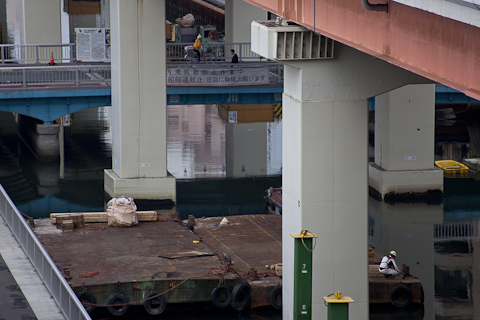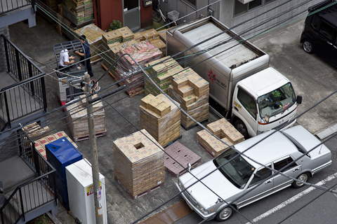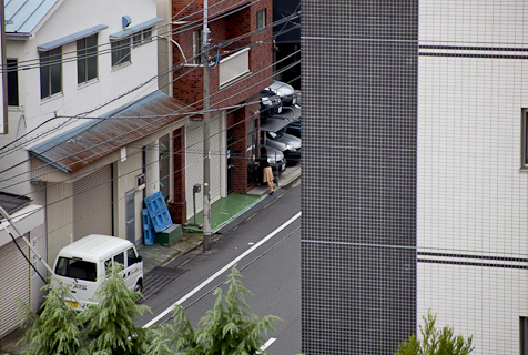A series of photographs taken from my 6th floor apartment at Tokyo Wonder Site resembling the ‘blown off roof’ (fukinuki yatai) perspective of Japanese scrolls. During a Tokyo Wonder Site residency I traced rhythms of movement in commuting and demonstrating in Tokyo in film-strips and explored the negotiation of personal space in public places.