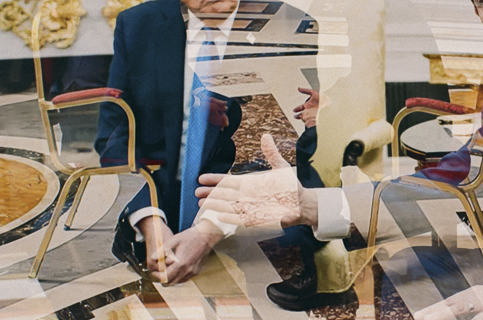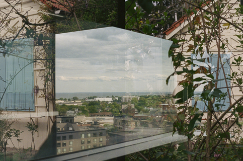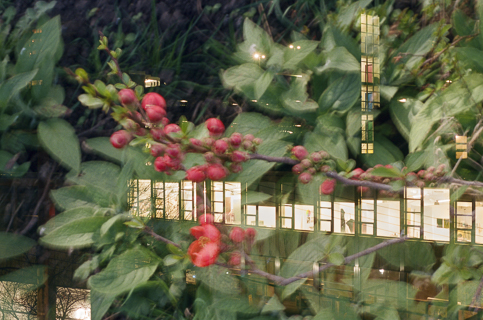 Everything is almost present is a series of photographs created through multiple exposures on photochemical film during Hamann's visit as artist in residence at the Wu Tsai Institute, Yale University. Each image overlays different moments in time. This process was inspired by scientific discussions on the interaction between long-term and working memory as a bridge between past and future, and attention. The project began by re-exposing films shot in New Haven while in London, and vice versa—an experiment using controlled chance. The mechanical and chemical processes allow for an unusual mixing of colours and intensities of layering. The resulting images invite viewers to shift their focus between recognisable details, such as flowers or architectural elements, and the unfamiliar new composition, making visible spatial, temporal and emotional dimensions.