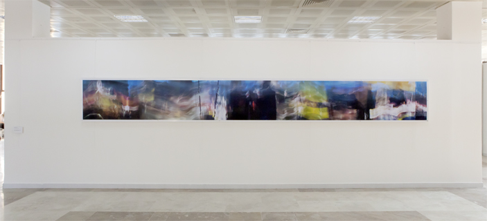 The film-strip depicts a section of a 90 second handheld cinematic pan of the student protest march against budget cuts in Whitehall 9.12. 2010, transformed into one panoramic image of 6 m width, made with a conventional photographic camera.