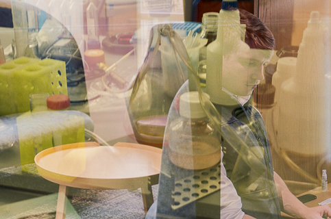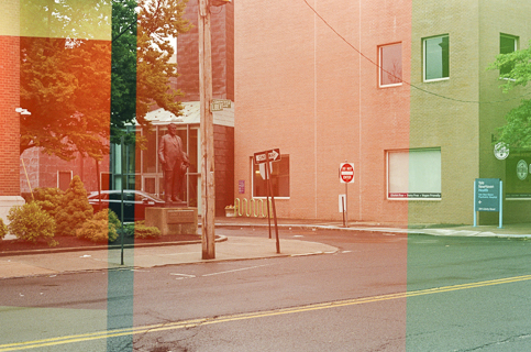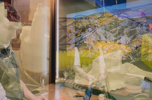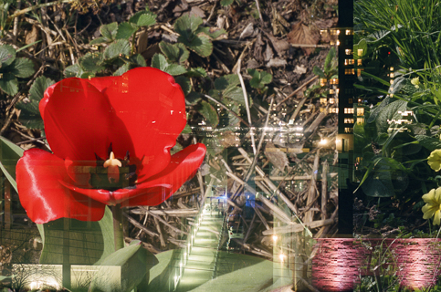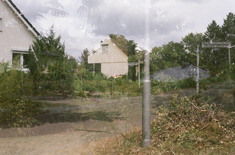 Everything is almost present is a series of photographs created through multiple exposures on photochemical film during Hamann's visit as artist in residence at the Wu Tsai Institute, Yale University. Each image overlays different moments in time. This process was inspired by scientific discussions on the interaction between long-term and working memory as a bridge between past and future, and attention. The project began by re-exposing films shot in New Haven while in London, and vice versa—an experiment using controlled chance. The mechanical and chemical processes allow for an unusual mixing of colours and intensities of layering. The resulting images invite viewers to shift their focus between recognisable details, such as flowers or architectural elements, and the unfamiliar new composition, making visible spatial, temporal and emotional dimensions.