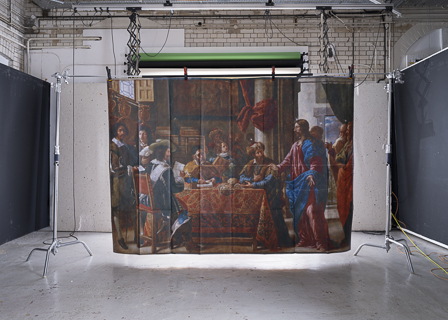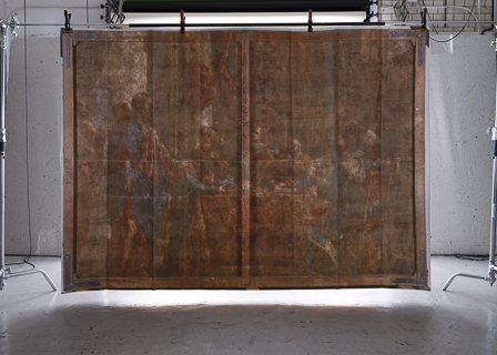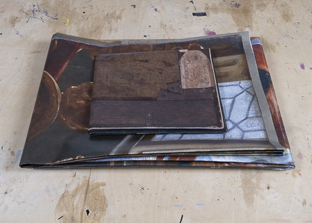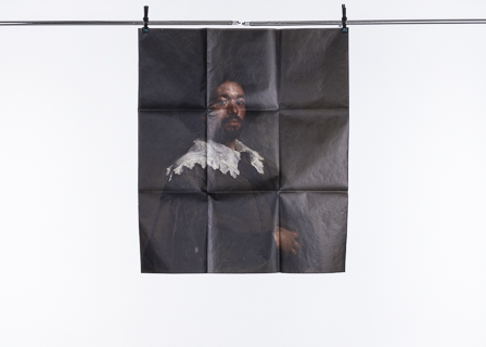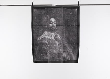 Pareja Project encompasses various images relating to Juan de Pareja, including the press photograph, Velázquez’s portrait of Pareja, X-rays of the portrait and Pareja’s largest painting, The Calling of Saint Matthew. The images are printed in their original sizes on paper-like Tyvek material, ranging from 8 x 10 inches to 2 x 3 meters, each print double-sided, displaying both sides of the painting/photograph. The images are scored and folded multiple times.